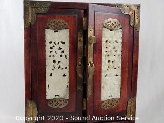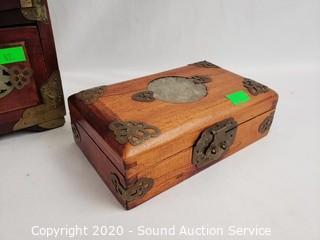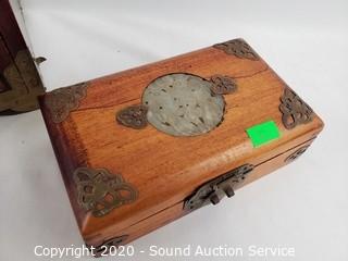 Lot #0082: 2 Wood & Carved Jade Inlayed Jewelry Boxes