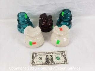 Lot #0401: 5 Ceramic & Glass Insulators