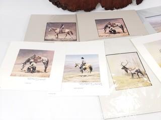Lot #0251: 8 Burt Dinius Western Signed Prints w/Burl Frame
