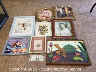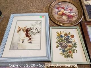 Lot Details: Some appear to be original. Cat litho is signed by artist Eleanor Sethman, refer to photos for more information. 7" x 9" to 17" x 11".