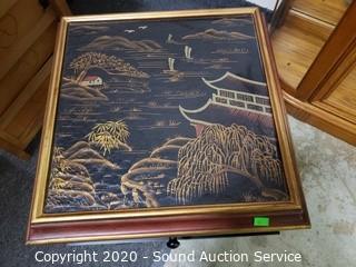 Lot #0041: Beautiful Hand Painted Asian Scene Side Table