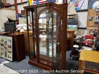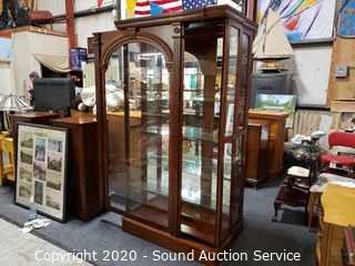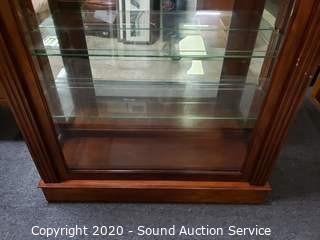 Lot #0015y: Beautiful Lighted Cherry Finish Curio Cabinet
