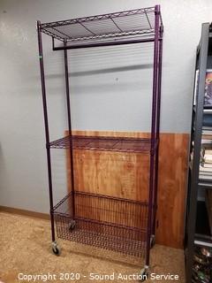 Lot #0391: Purple 3-Tier Rolling Steel Utility Clothes Rack