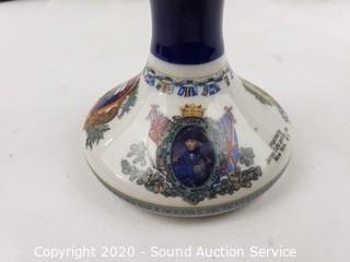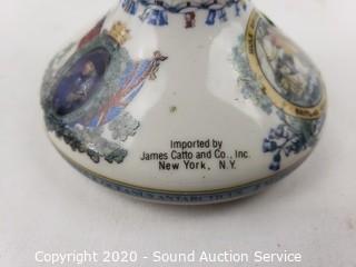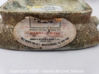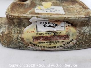 Lot Details: Ash trays were made in Italy with an Egyptian scene, British Navy Pusser's Rum bottle, National bowl and pottery bottle. 3.5" to 7" bottles.