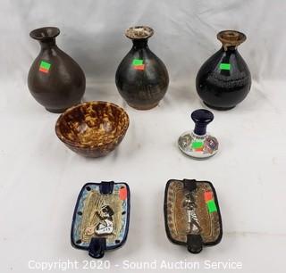 Lot #0222: Vintage Pottery Bottles, Bowl & Ash Trays