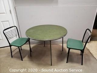 Lot #0054: 3pc Green Folding Table & Chairs Set