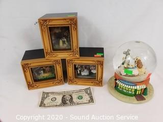 Lot Details: Includes snow globe and 3 Gallery of Lights decor. Lights are not working. Approx. 4" to 6" tall.