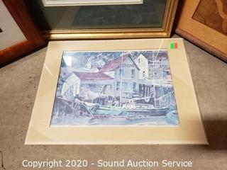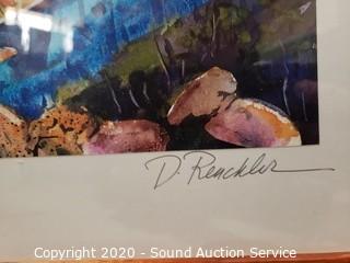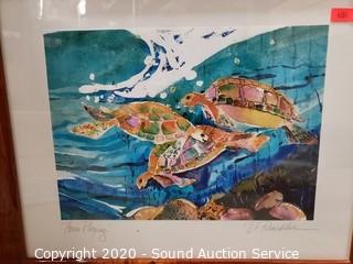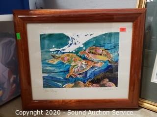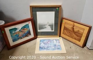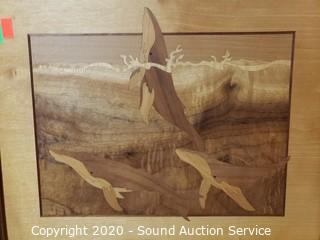 Lot Details: Includes D. Renchler titled "Homu Playing" original artwork, original Nelson humpback whale marquetry artwork and 2 other lithographs. 10" x 14" to 17.5" x 20".