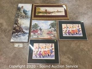 Lot #0408: 5pc Original & Lithograph Artwork