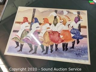 Lot Details: K. English Farm Print, Original May Plummer watercolor, Brent Heighton watercolor, 2 Ray McCarty "Russian Dancer" litho's. 20" x 16" to 16" x 30".