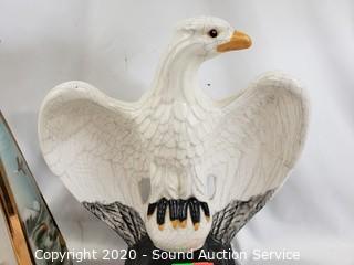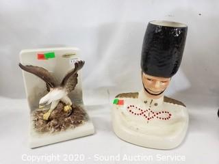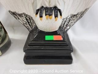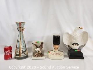 Lot #0267: Ceramic Eagles, Beefeater Vase & Decanter