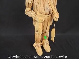 Lot #0227: Handcrafted Corn Husk & Wood Native Sculpture