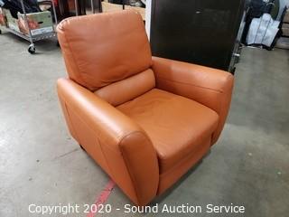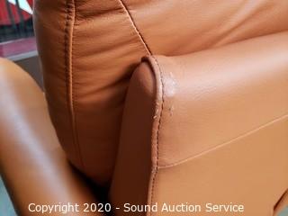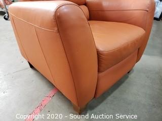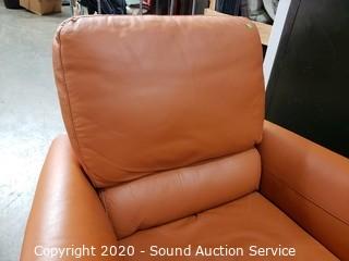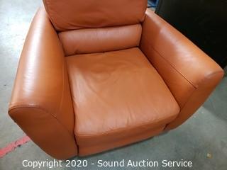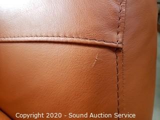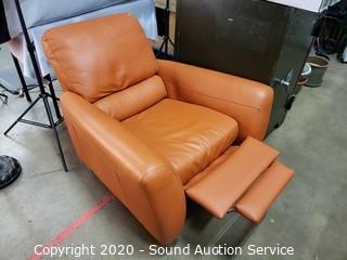 Lot #0044: Nice Orange/Brown Leather Pushback Recliner