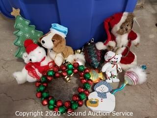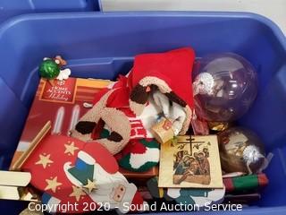 Lot #0381: Tote w/Various Christmas Ornaments & Decor