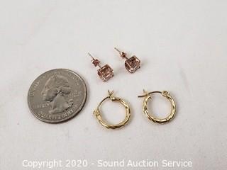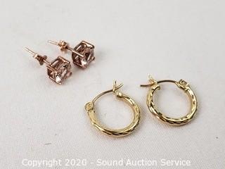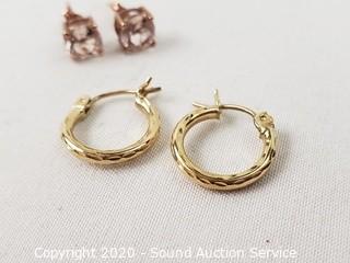 Lot #0089: 10k Gold Small Hoop & Rose Gold Stud Earrings