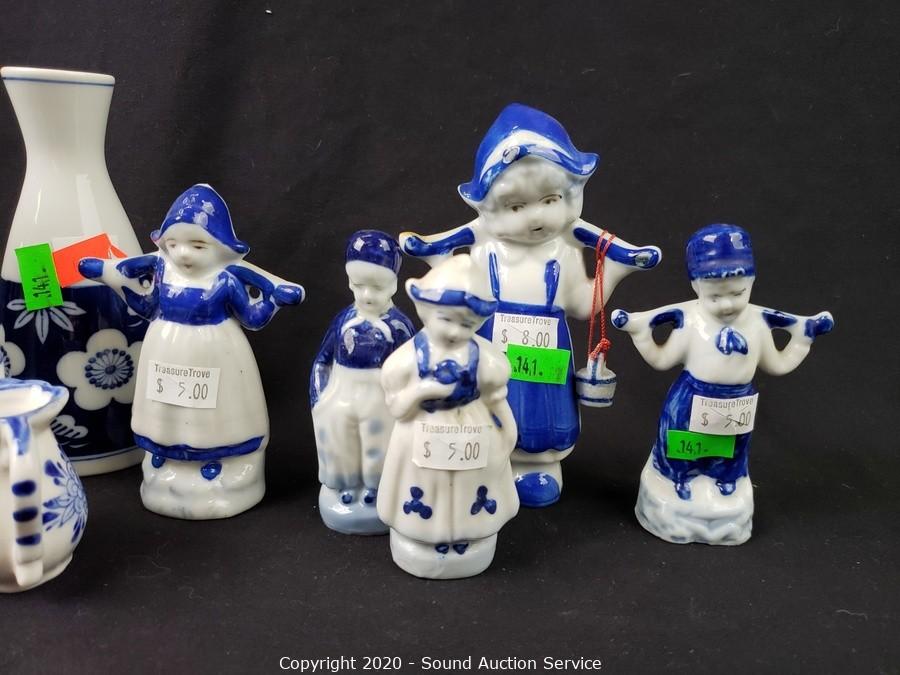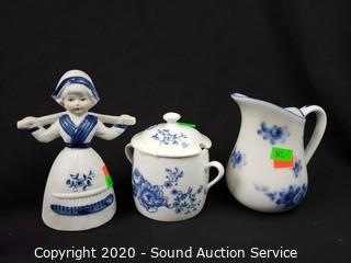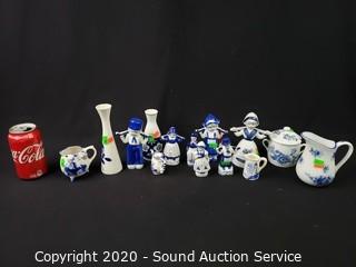 Lot #0141: 14pc Delft Blue Figures & Tableware