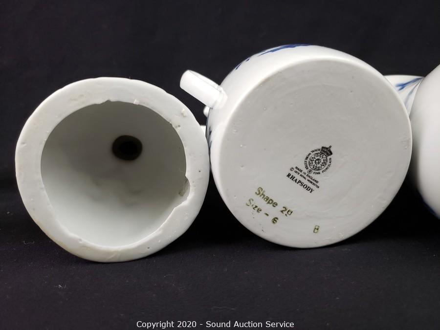 Lot Details: Includes Royal Worcester "Rhapsody" England cream and sugar, Harry & David creamer, Japan vases, possibly Holland figures and others. Largest figure has a couple chips around the base, refer to photos.