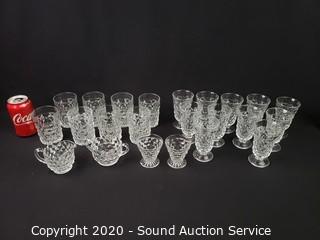 Lot #0114: 24pc Clear Anchor Hocking Block Optic Glassware