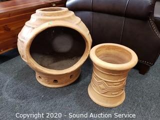 Lot #0019: 2pc Chiminea Pottery Fireplace