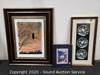 Lot Details: Includes signed Bergsma lithograph, katana cranes print and owl. 8.5" x 10.5", 10.5" x 21.5" and 21" x 25".