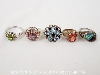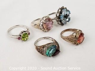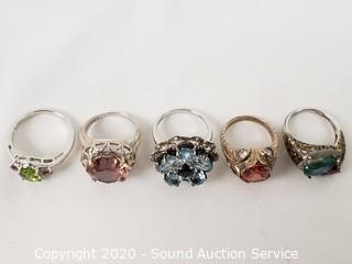 Lot #0084: 5 Sterling & Gemstone Set Rings S: 7, 8 & 9