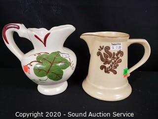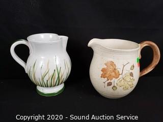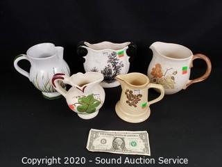 Lot #0290: 5pc Vintage Porcelain & Stoneware Pitchers