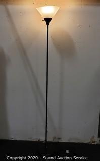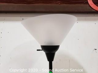 Lot Details: Plastic satin shade. Works. 71" H x 10" D.