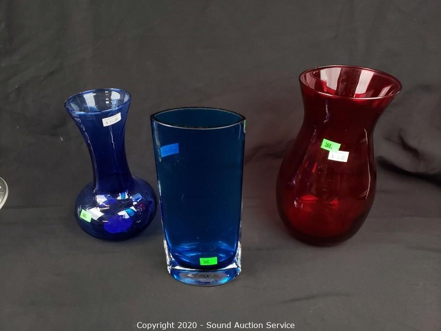 Lot Details: Vases, compotes, candle lantern. 4" to 10" tall.