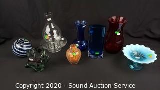 Lot #0160: 8pc Colorful Glassware Decor