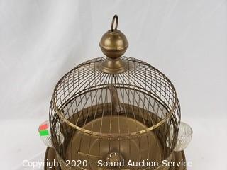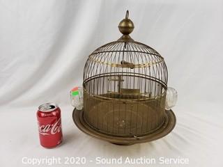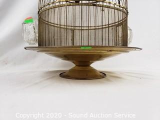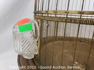 Lot #0080: Antique Hyndrix Brass Birdcage w/Glass Feeders