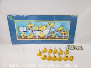 Lot #0033: Artist Signed Rubber Ducky Litho & Shower Hooks