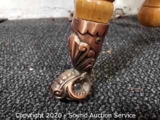 Lot Details: Screw adjustment, Copper & glass claw & ball feet. 18" to 24" H x 14.5" Dia.