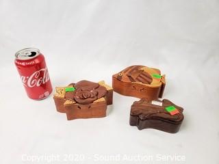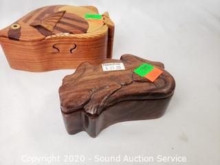 Lot #0340: Pair of Wood Puzzle Trinket Boxes & Other