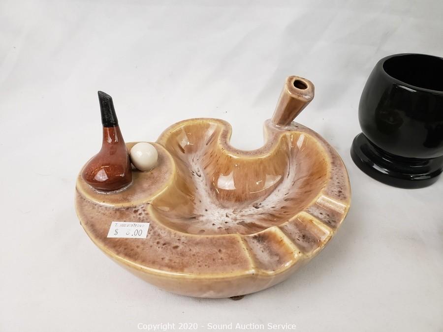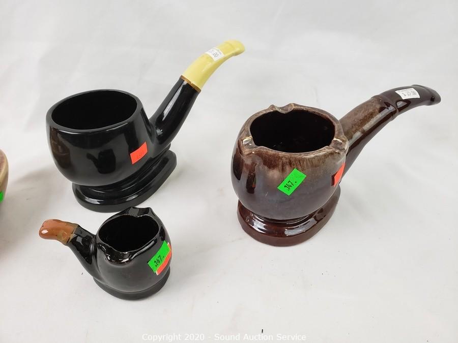 Lot #0147: Porcelain Pipe & Golf Mug & Ash Trays