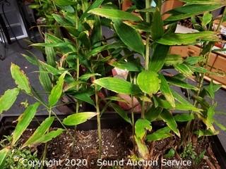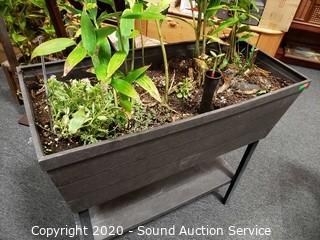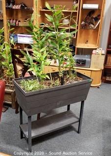 Lot Details: Believe the plants are Broadleaf Helleborine? 31" H x 32" W x 16" D planter, 34" tall plants.