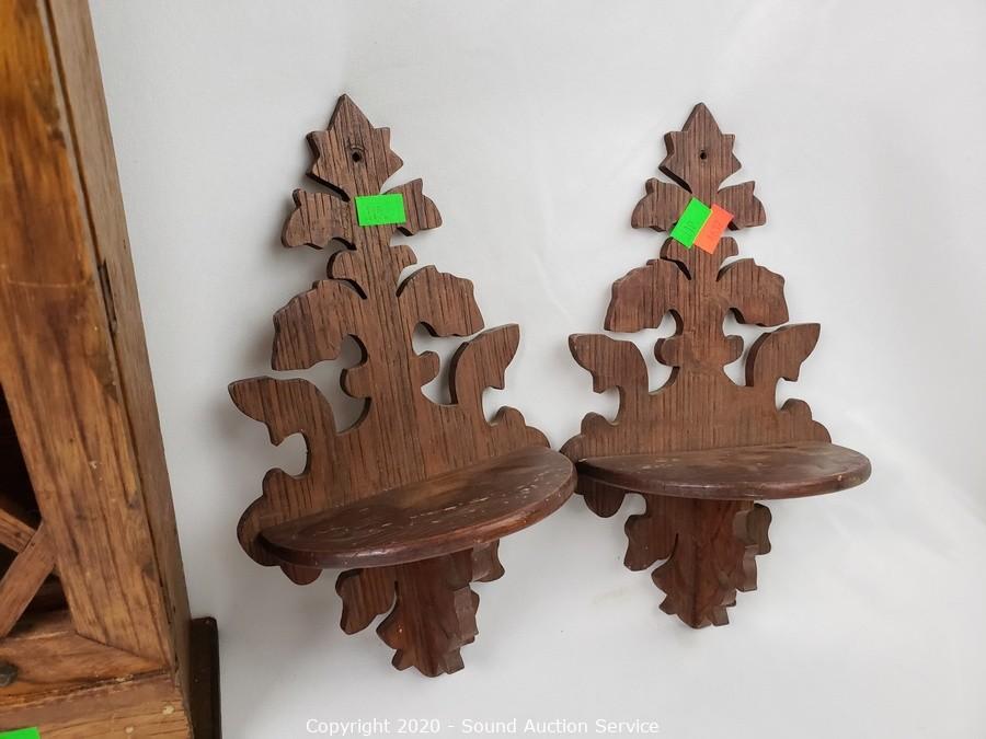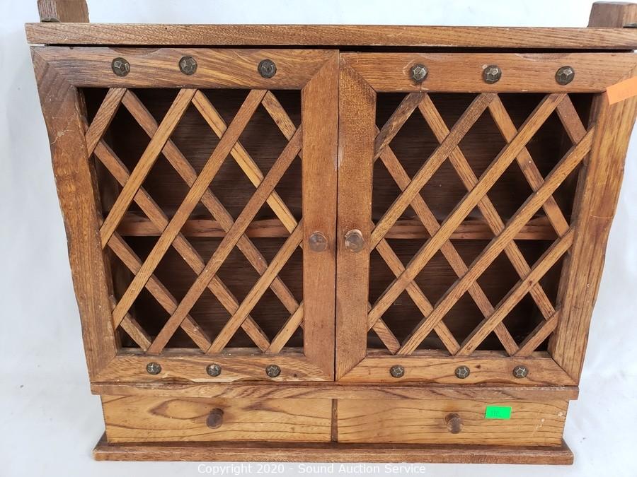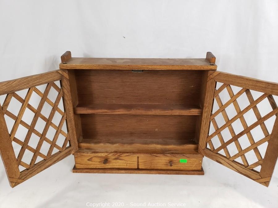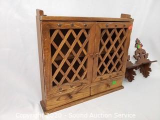 Lot #0110: Wood 2-Drawer Spice Rack & Candle Sconces