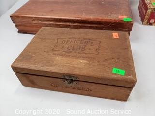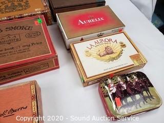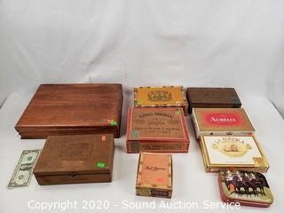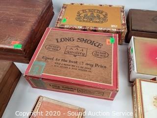Lot #0069: 9 Vtg. Cigar Boxes & Flatware Chest