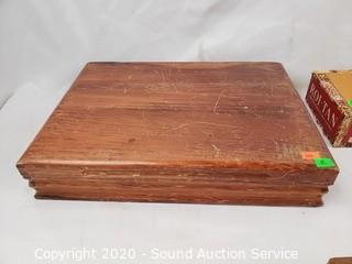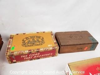 Lot Details: 2" x 5.5" x 9" to 3" x 7" x 8.5" cigar boxes, 3" x 15" x 10.5" flatware chest.