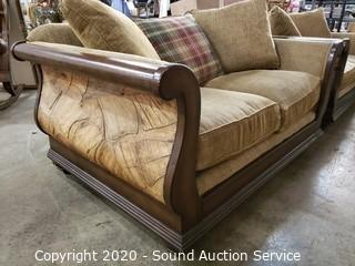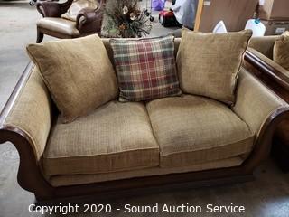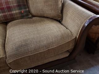 Lot #0135: Bassett Wood Frame Fabric Upholstered Loveseat