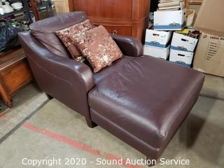 Lot #0380: Faux Leather Lounger w/Throw Pillows