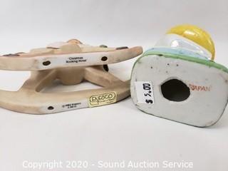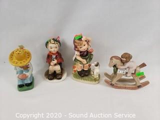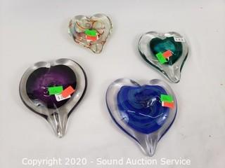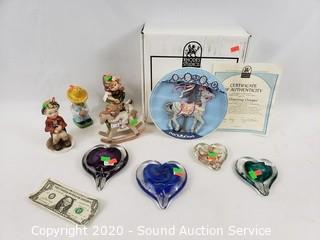 Lot #0424: Art Glass Hearts, Ceramic Figures & Musical Plate