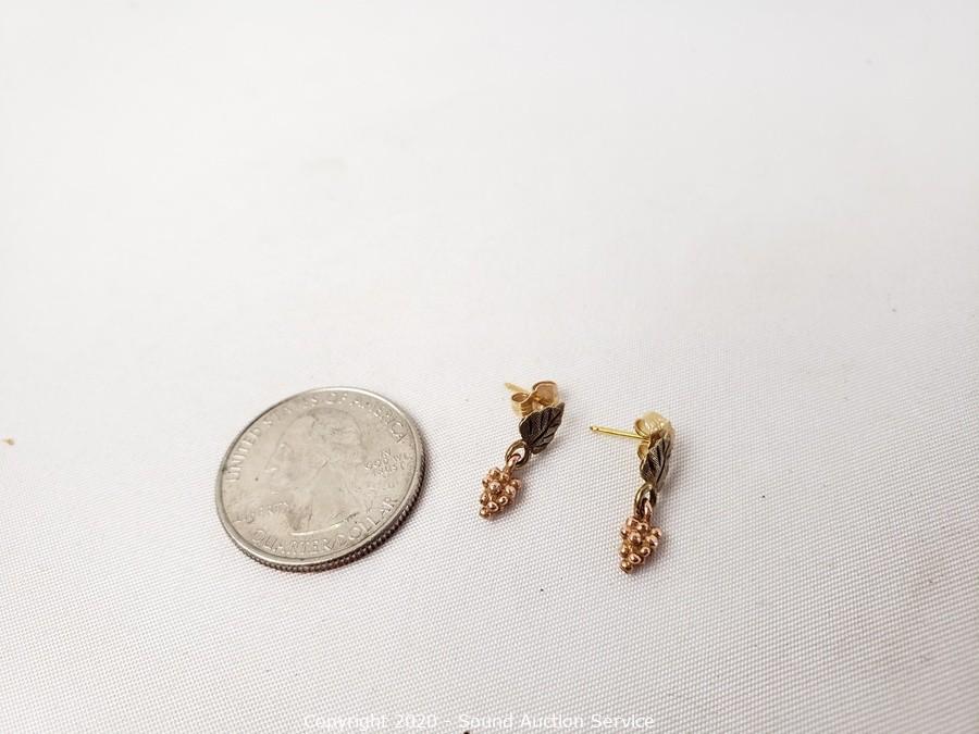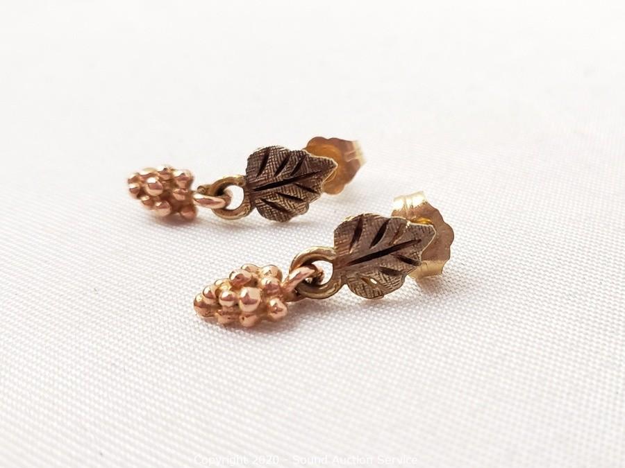 Lot #0076: 14K Leaf Grape Cluster Gold Earrings