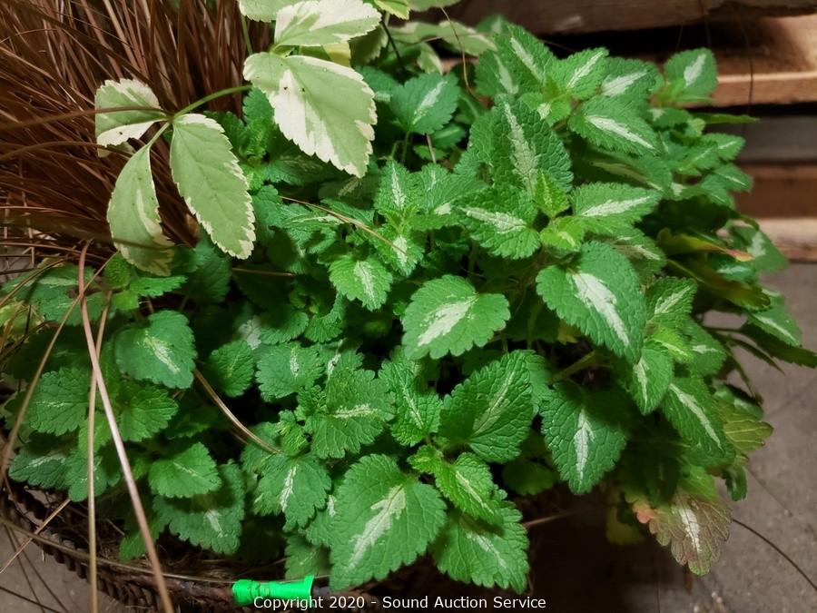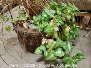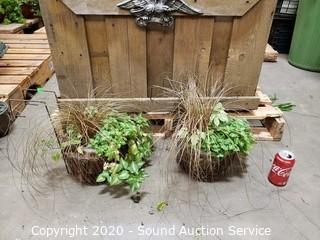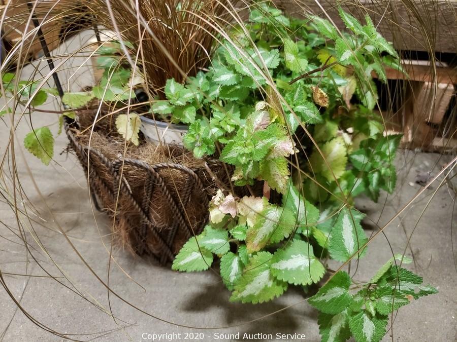 Lot Details: Unsure what the grass is. 12" and 18" spread, 12" x 8" hanging metal planters.