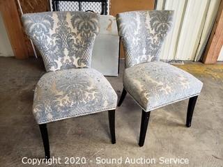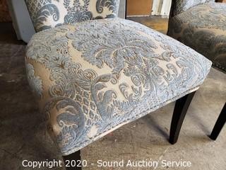 Lot #0034: 2 Nice Silver Fleur Fabric Accent Chairs