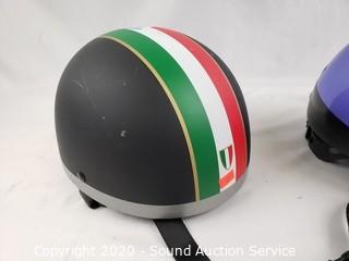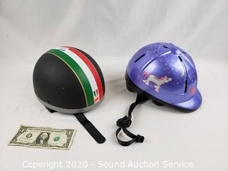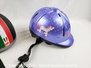 Lot Details: Includes Agis pony helmet size XS and Italian logo helmet size small.