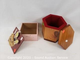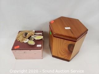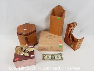 Lot #0357: 5pc Wood Trinket Boxes & Other Decor