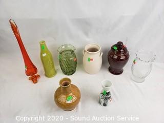 Lot #0229: 8 Pottery & Glass Vases & Canister