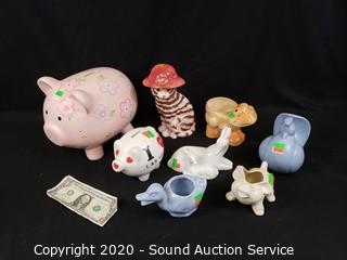 Lot #0350: 8pc Ceramic Planters, Figures & Coin Banks