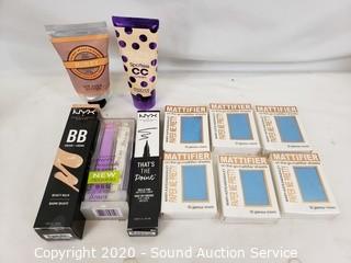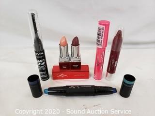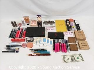 Lot Details: Includes false lashes, nail files, blush, compacts, brow kit, eye shadow, eyeliner pencils, glamour sheets, eye color, lipstick, lip jelly and more.