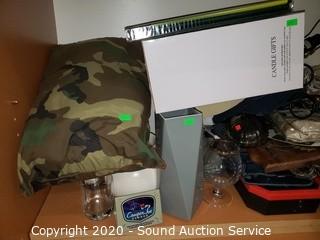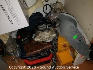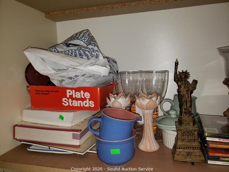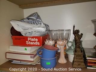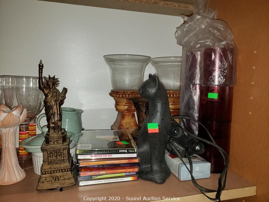Lot Details: Candle holders, hurricanes, binoculars, CDs, scrap book & more.